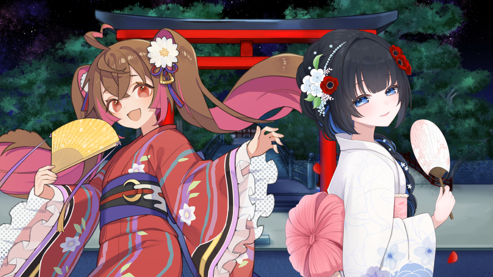 言の葉を紡ぐのは浴衣の衣装に身を包むるうあ(r2n000029)と古月 せをり(r2n000108)だ。なるべく陽気に、皆を鼓舞するようにるうあは言を紡ごう……行方不明となった中には彼女らに縁のある者や、K.Y.R.I.E.は当然として――龍華会に知古のいる者など多岐に渡る。