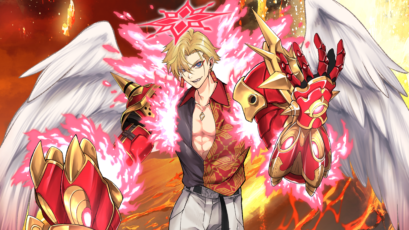 赤く噴き出したオーラが上半身、両肩両腕を中心に渦を巻いていた。